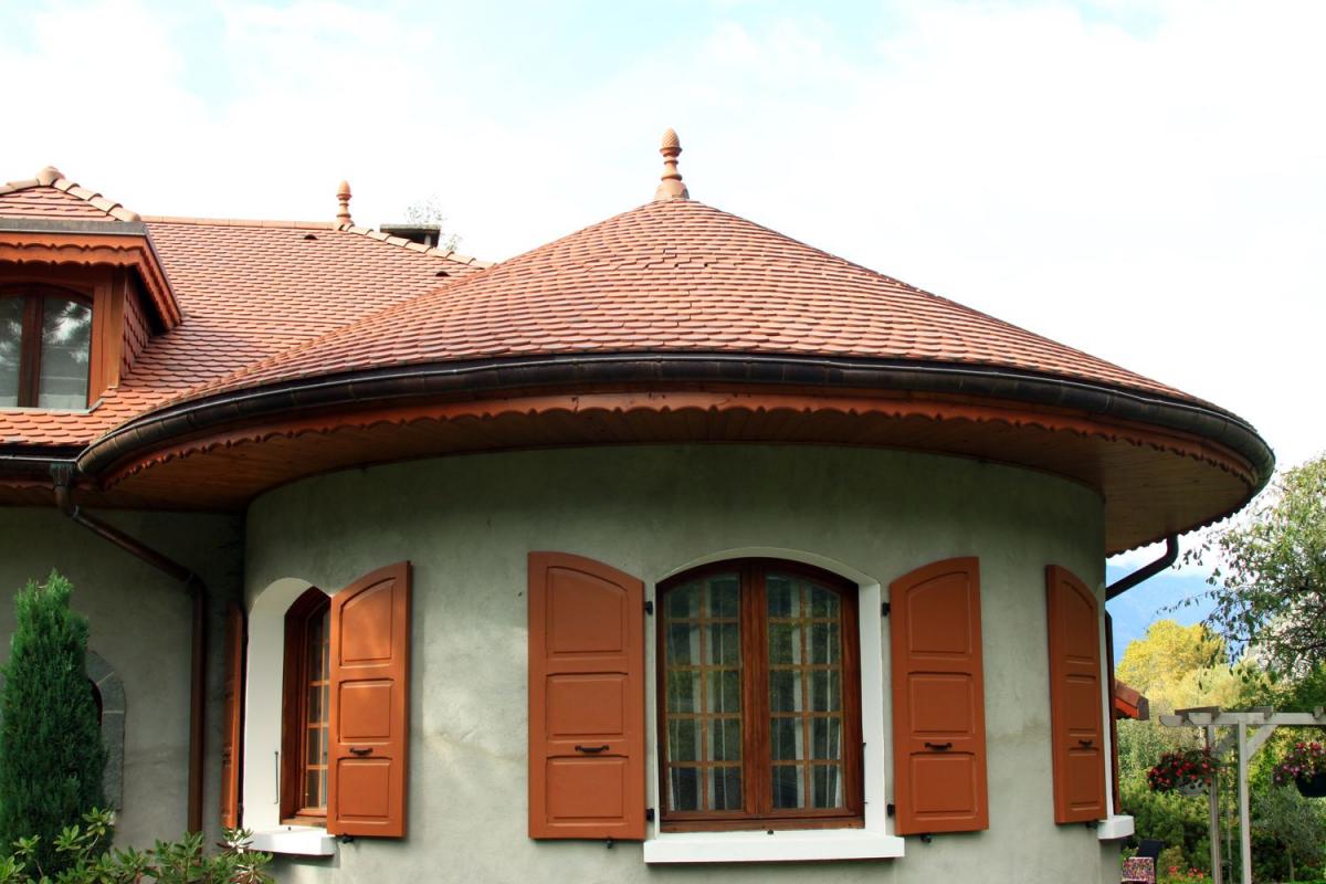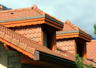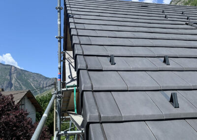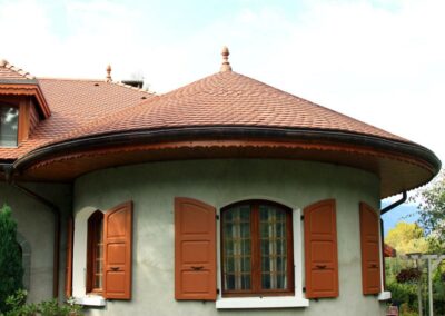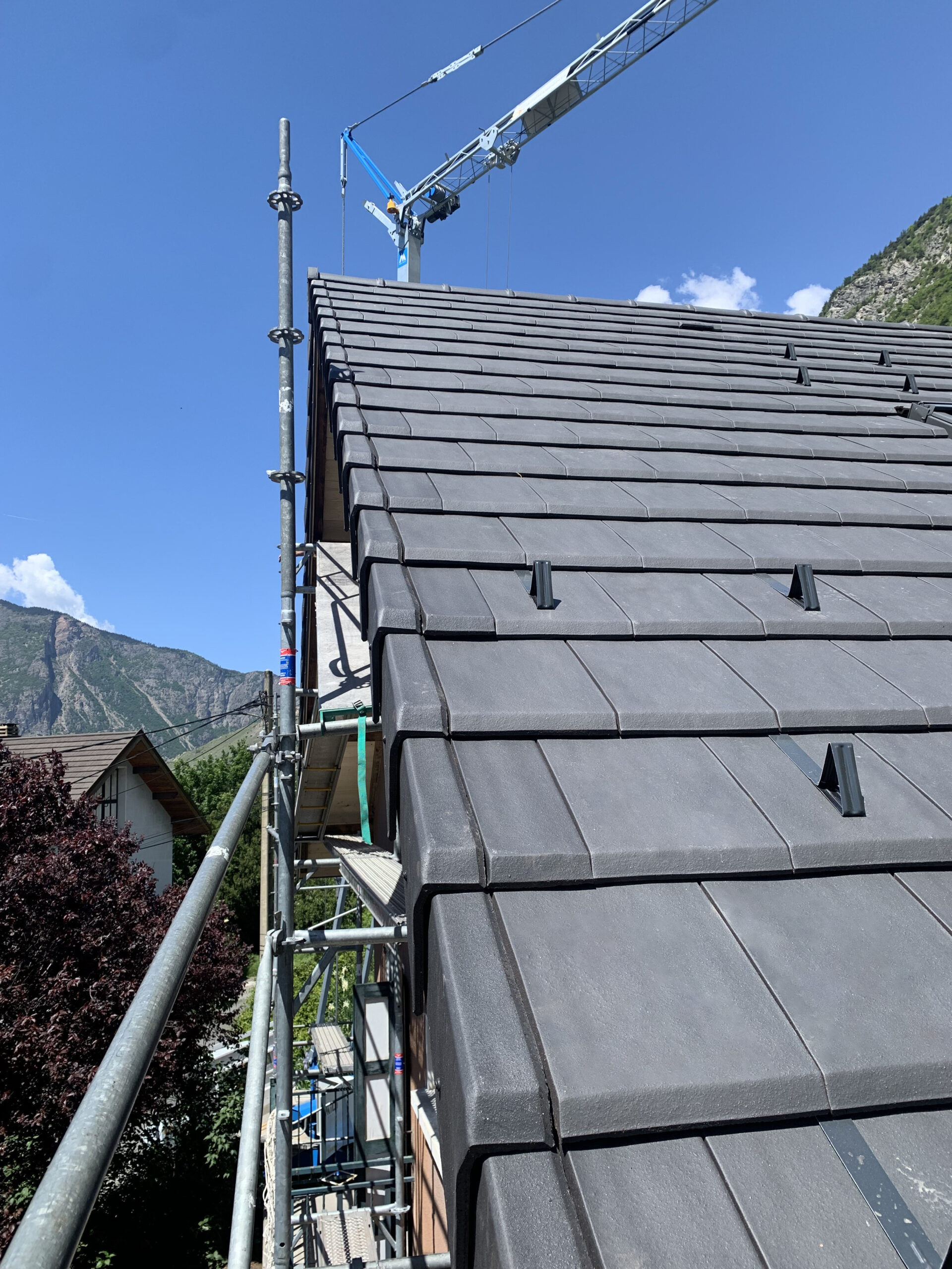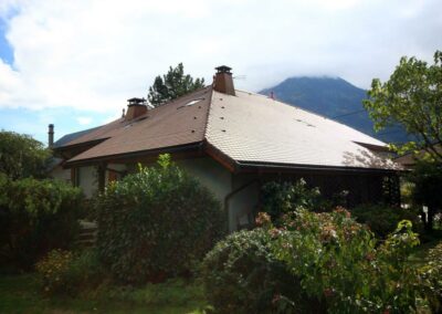 AT Charpente propose la pose de 2 types de tuiles : La tuile écaille très utilisée en Savoie pour valoriser les architectures traditionnelles ou la tuile HP 10 à l'aspect résolument moderne.