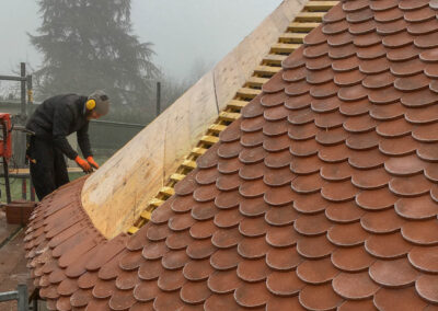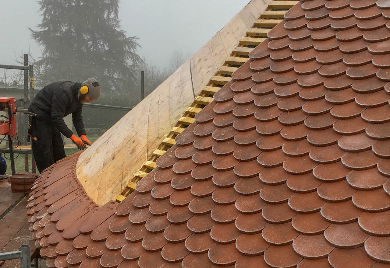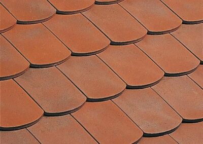 La tuile écaille tient son nom de sa forme qui donne au toit un motif en écailles de poisson très spécifique. Son galbe régulier sur la totalité de sa surface signe une esthétique unique. Émaillée selon toutes les couleurs de notre nuancier, la tuile plate écaille concilie respect des traditions locales et originalité.